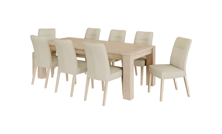 Blagovaonski set Anton stol i 8 Anita stolica spoj je elegancije i dugovječnosti. Ploča stola izrađena je od masivnog hrasta, dok čvrsta konstrukcija od masivnog drva osigurava stabilnost i trajnost. Ovaj set idealan je za prostrane blagovaonice, pružajući toplinu prirodnih materijala i udobnost za dugotrajna druženja.