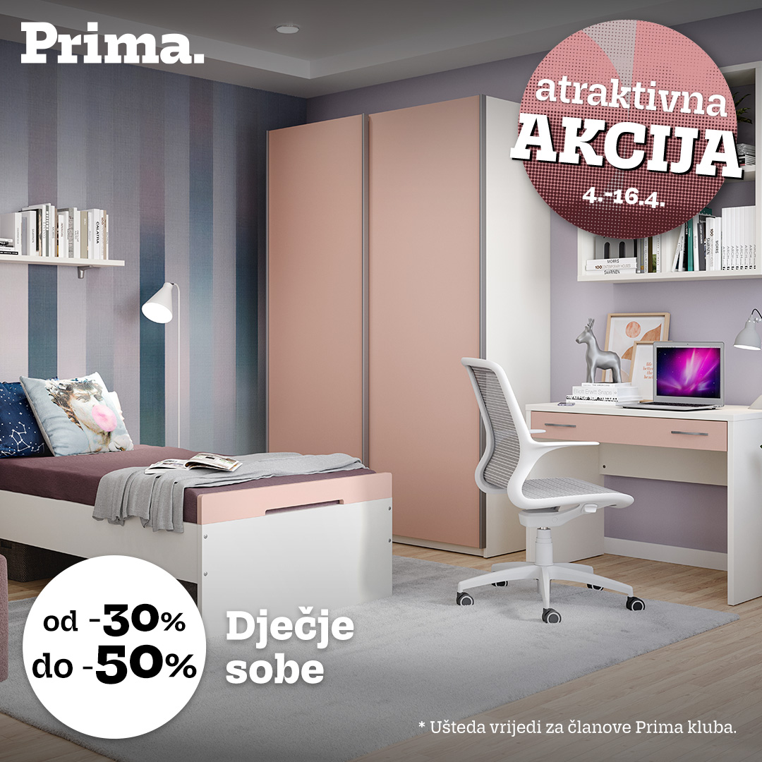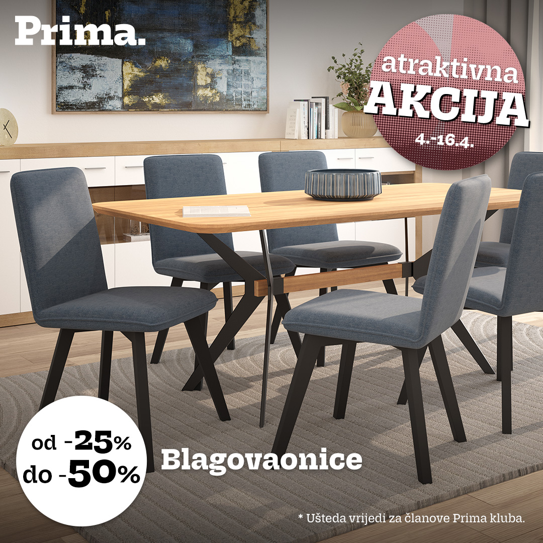 Posjetite Prima salone i webshop u periodu od 4. do 16. travnja jer počinje Atraktivna akcija koja donosi uštede* pri opremanju interijera baš u vašem stilu!