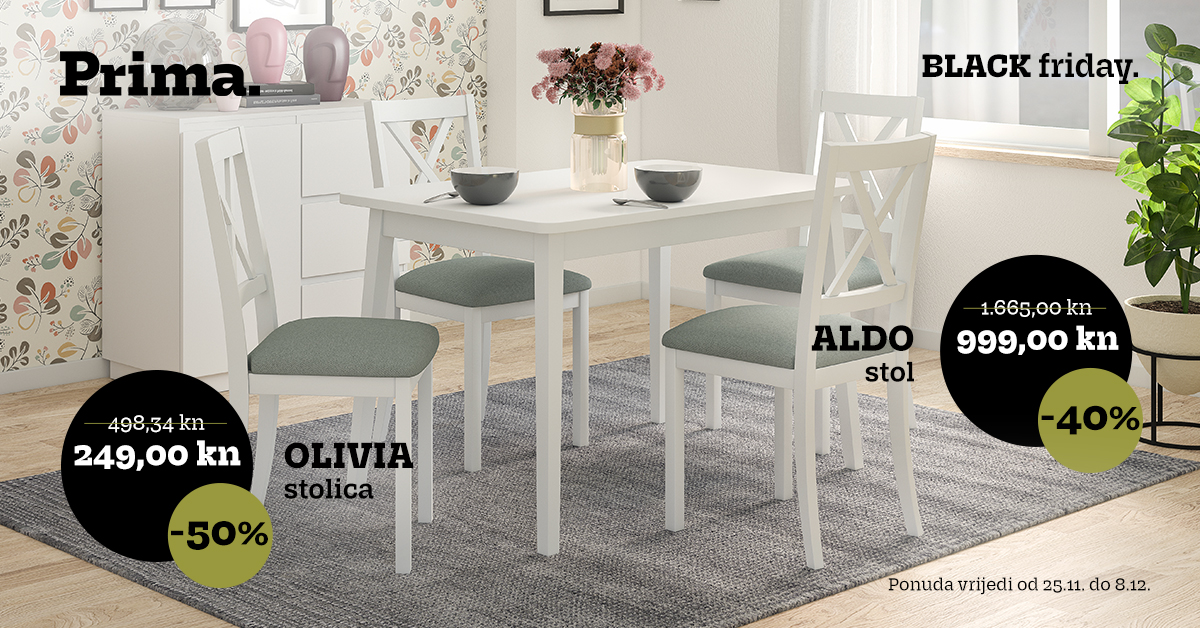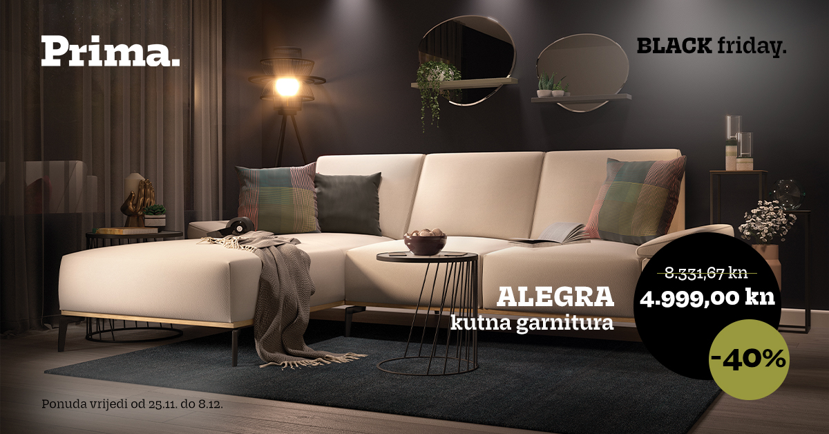 Ostvarite svoju viziju idealnog doma uz Prima namještaj i dekoracije po Black Friday cijenama te uživajte u blagdanskom periodu!