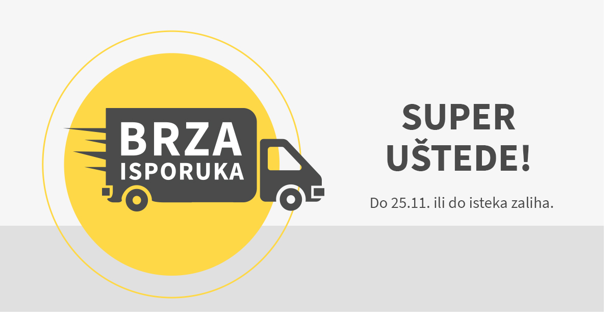 Brza isporuka odnosi se na osobno preuzimanje i odnosi se na predviđene količine zaliha i podrazumijeva rok od 14 radnih dana, ako nije drugačije naznačeno.
