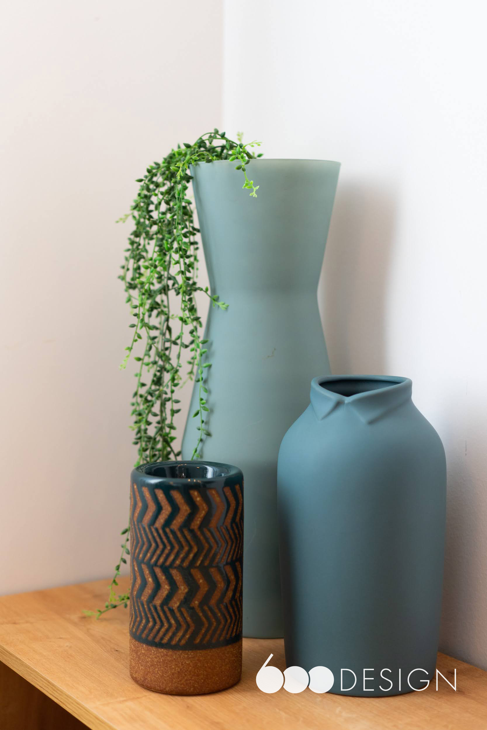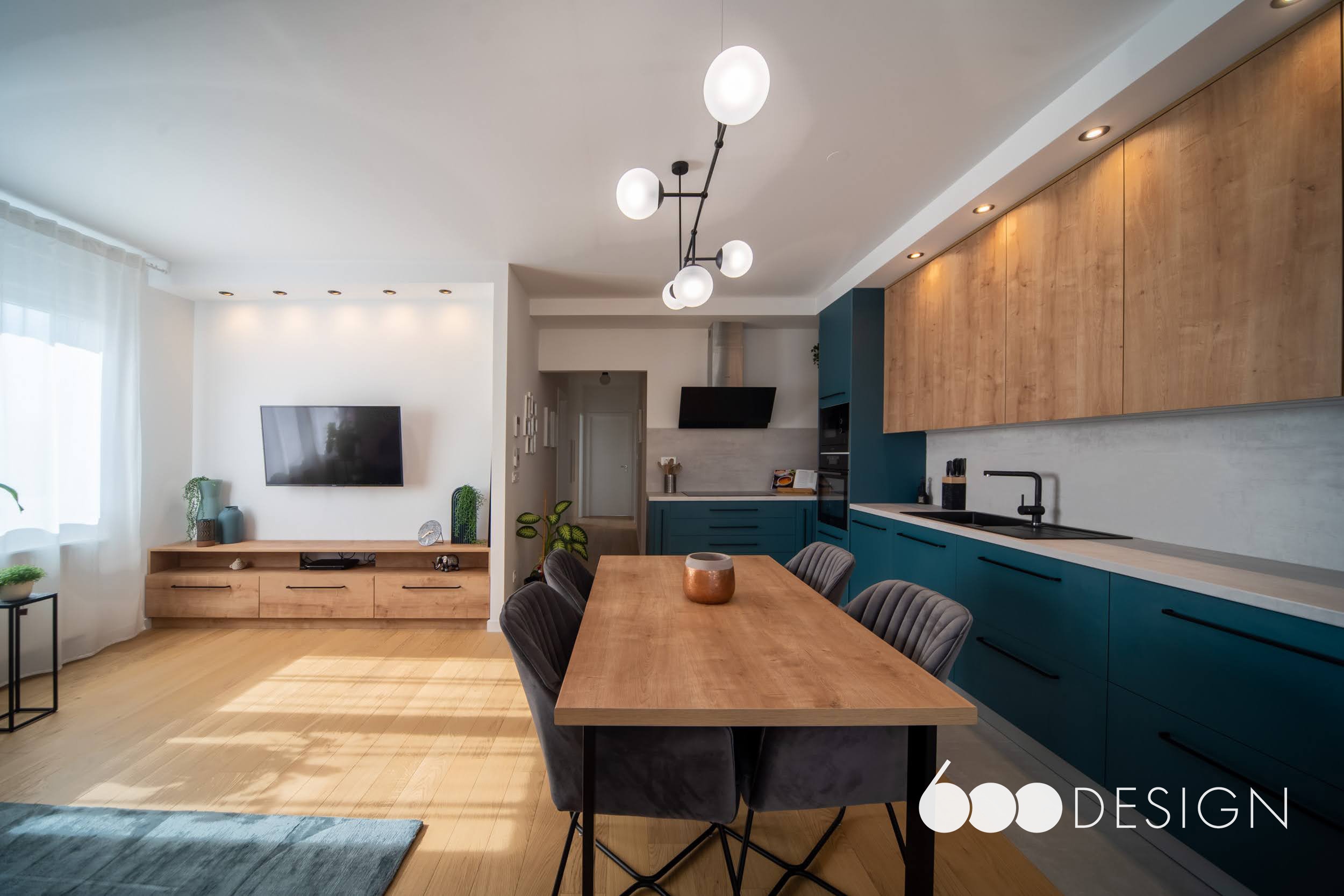 Kombiniranjem petrolej plave boje s dekorom drveta, neutralnim sivim tonovima i finim teksturama, bakreno-narančastim detaljima te puno svjetlosti koja dopire kroz staklene stijene, postignuta je idealna ravnoteža između toplog i hladnog, modernog i klasičnog te je stvorena ugodna atmosfera za opuštanje i druženje.