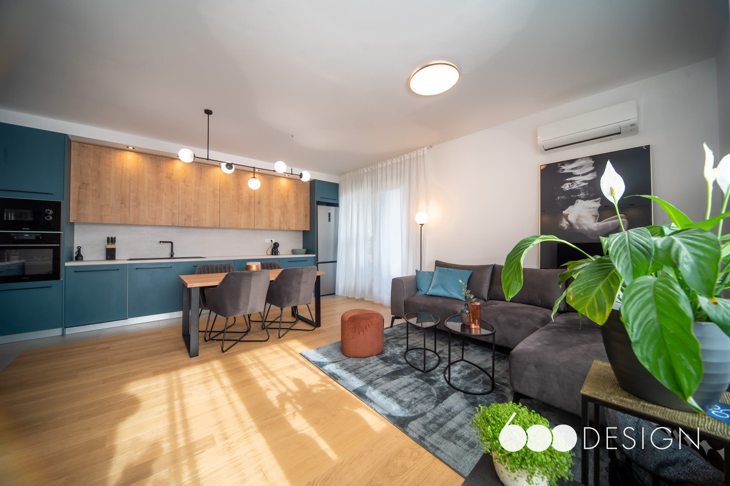 Cijela priča kreće na zagrebačkim Oranicama u izgradnji stana veličine 90 kvadrata. Mladi vlasnici izrazili su želju da stručna osoba bude uključena u planiranje dizajna od samog početka. Od izrade tlocrtnog rješenja zajedničkih prostorija, 3D vizualizacije gotovog rješenja, odabira materijala, pločica, parketa, izrade nacrta namještaja po mjeri, plana polaganja pločica, do odabira većine gotovog namještaja i dekoracija.