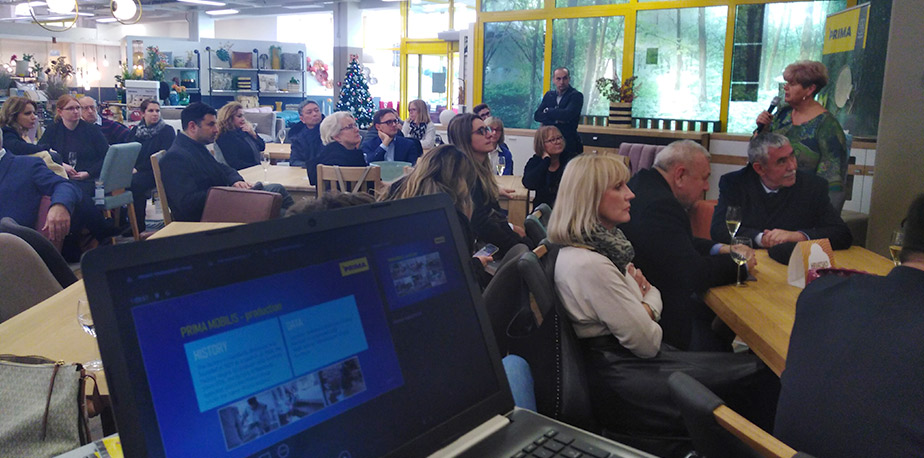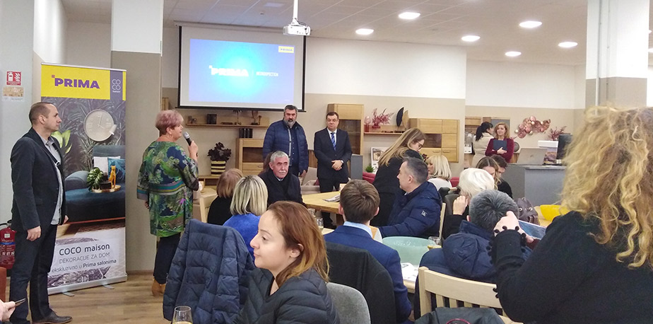 Direktorica Prima namještaja Gordana Pušetić uzvanike je upoznala s detaljima o Prima grupi - od samih početaka, kada je Primu 1995. godine osnovala obitelj Radić do današnjih 66 (58 u Hrvatskoj i 8 u Makedoniji) maloprodajnih salona, 8 tvornica te 2016 zaposlenika.