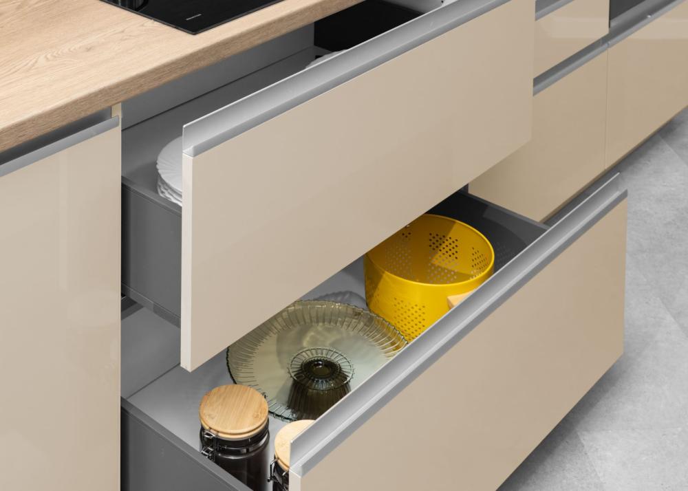 Praktične ladice i ormarići s razdjelnicima osiguravaju da su vam alati za pečenje uvijek pri ruci. Odredite jedno mjesto za sve kalupe, valjke, modlice i papir za pečenje kako biste izbjegli nepotrebno traženje tijekom pripreme slastica.