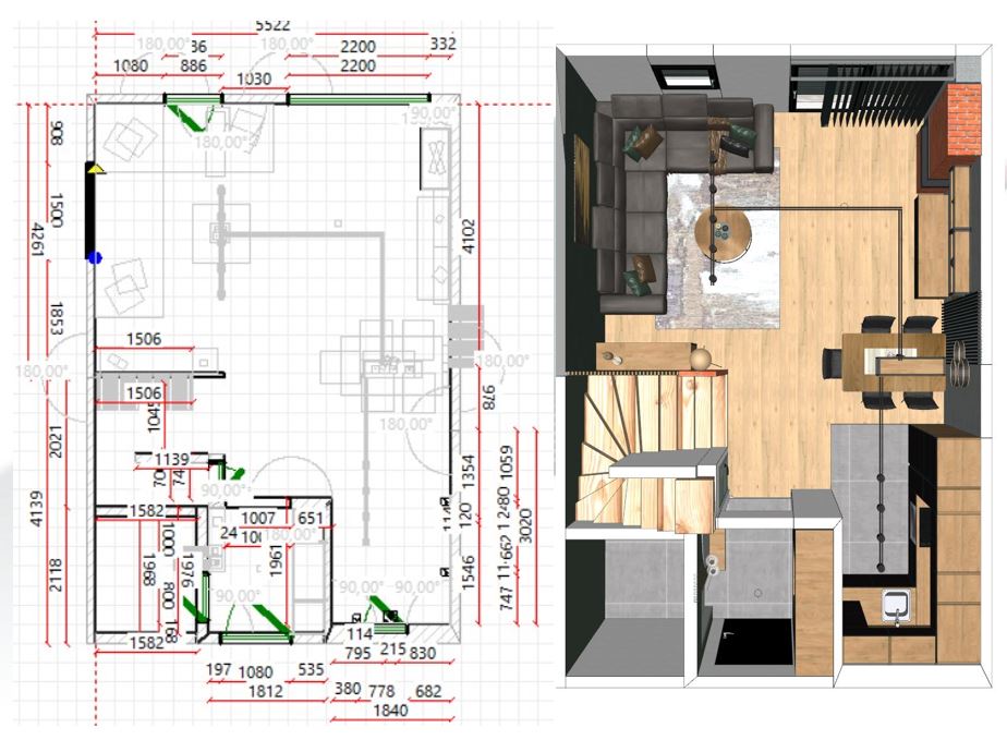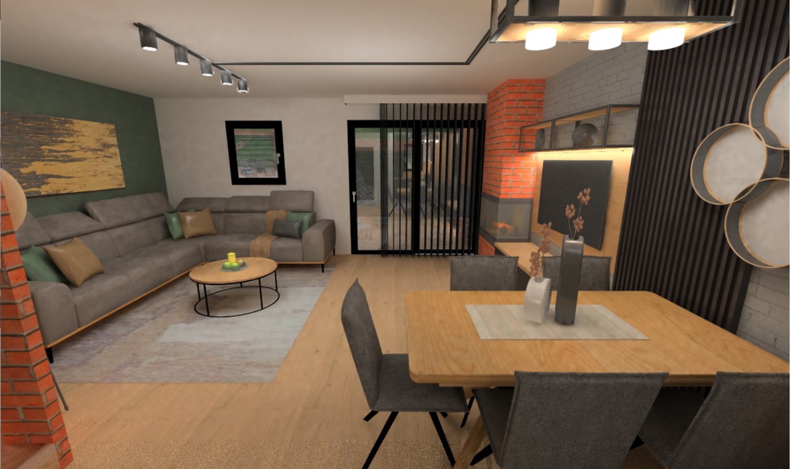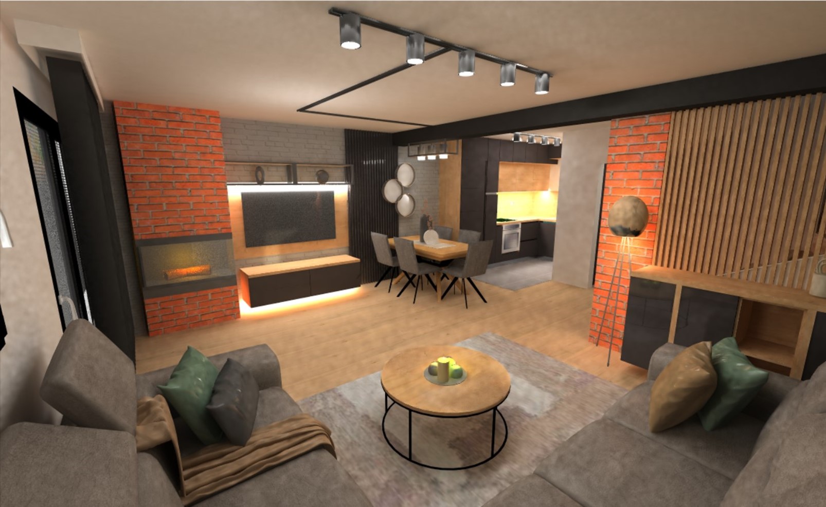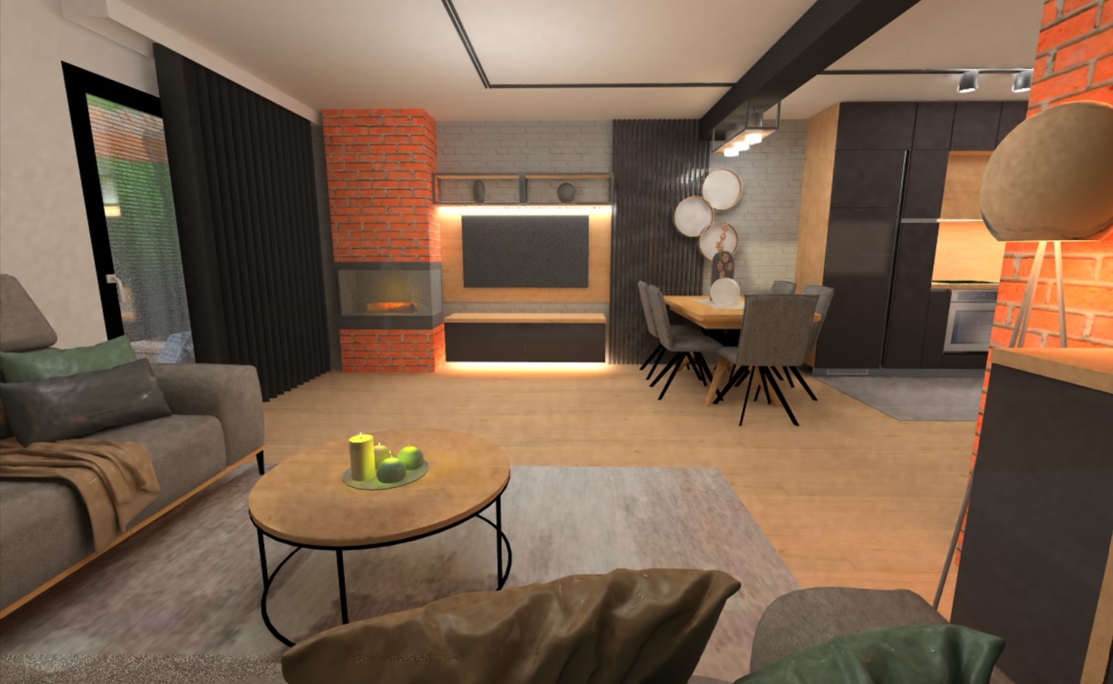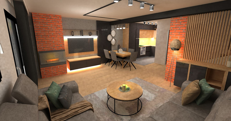Vlasnici su izrazili želju da dnevni prostor bude u kombinaciji modernog, minimalističkog i industrijskog stila. Industrijski stil je stil prepoznatljiv po prevladavanju drva u svjetlijim i tamnijim nijansama, namještaja u crnoj i sivoj boji te detalja od metala poput polica, postolja stolića, rasvjete...
