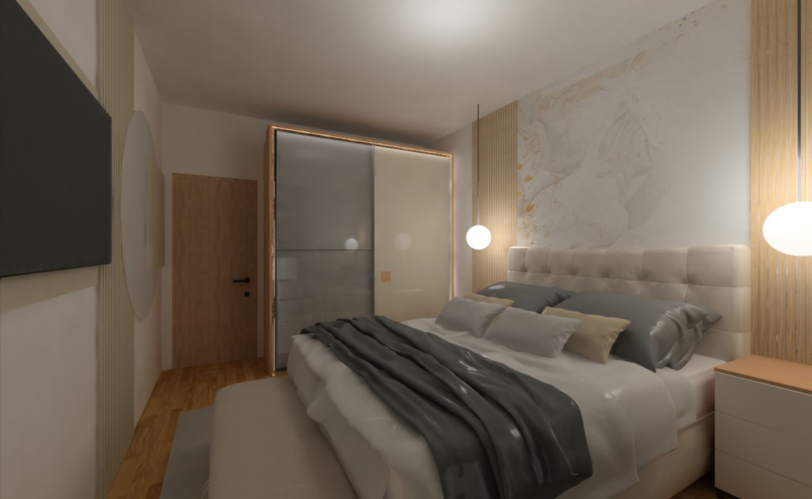 Na katu kuće, u spavaćoj zoni, korišteni su bež tonovi u kombinaciji sa svijetlim drvom i bijelom bojom, kako bi se prostoru dala potrebna mirnija atmosfera i toplina.
