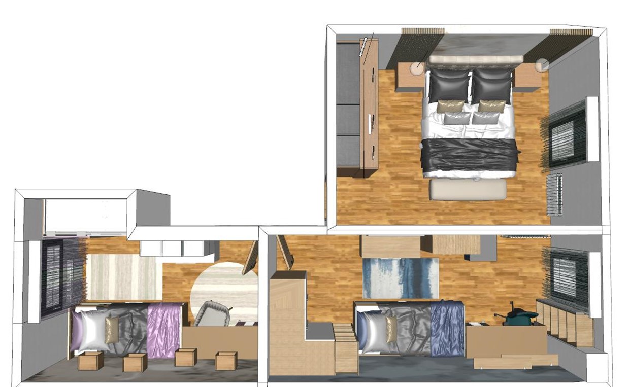 Projekt opremanja ove atraktivne obiteljske katnice je u procesu realizacije. Odabran namještaj je naručen i proizvodi se u našim tvornicama. Rokove isporuke prati naša dizajnerica koja će voditi cijelo opremanje i biti prisutna na svakom koraku - od dostave, montaže, sve do završnih detalja i dekoriranja.