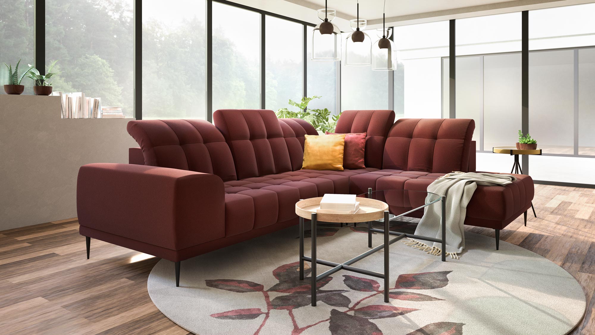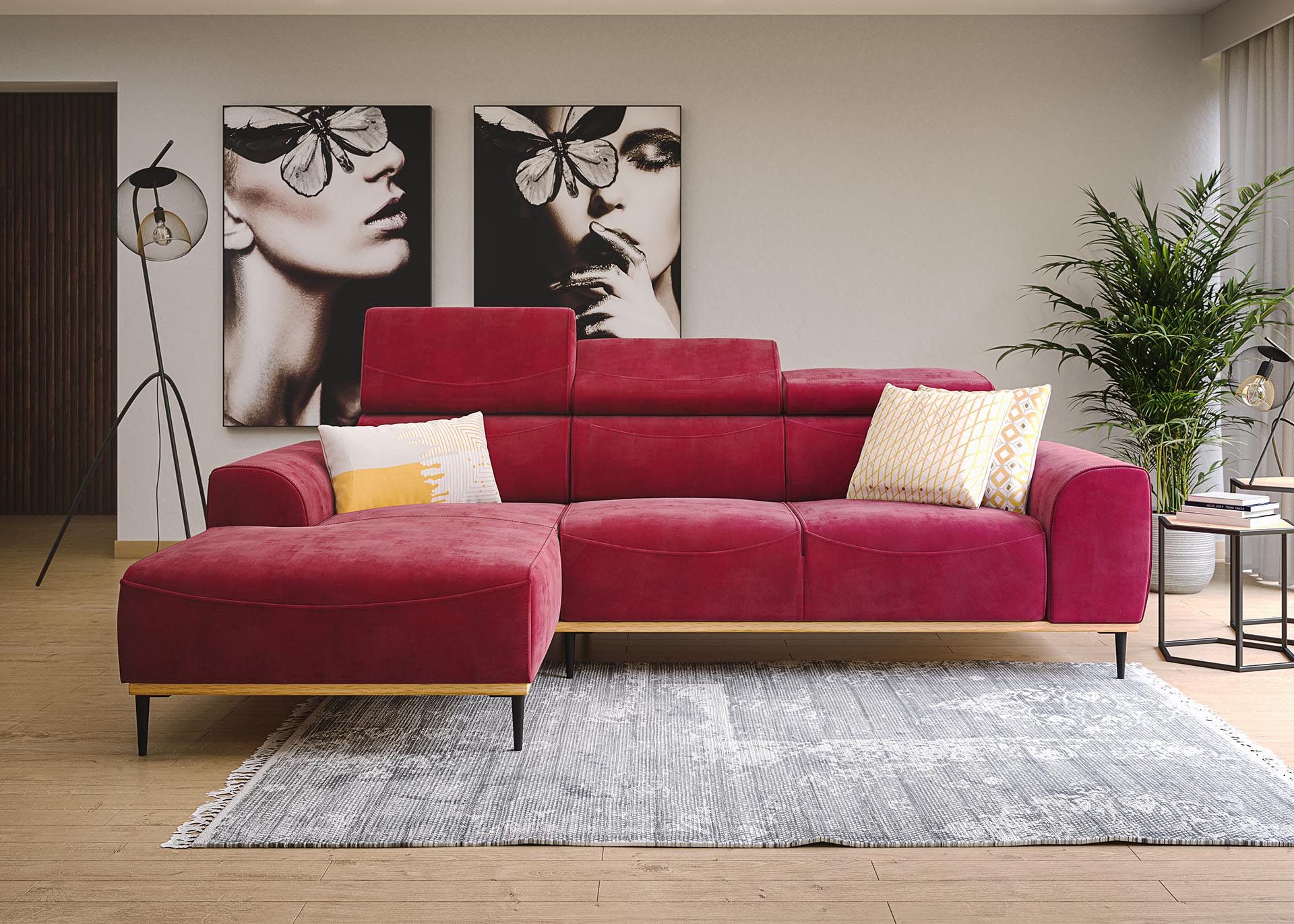 Osim prostranosti, ova kutna garnitura ima pomične naslone i električni mehanizam za izvlačenje sjedišta što omogućuje užitak prema vlastitim preferencijama, a prošiveno sjedište i naslon pružaju joj dodatnu otpornost. Jednako efektne su modularna garnitura Palmanova te popularna garnitura Melodia čije su jednostavne linije naglašene luksuznim materijalima i moćnim bojama među kojima je, naravno, i crvena.