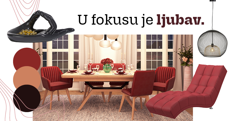 Stoga, ovog Valentinova zaboravite na precijenjene dejtove u prenapučenim restoranima i luksuznim hotelima. Umjesto toga ostanite doma i namještajem crvenih nijansi stvorite ambijent koji će oduševiti i probuditi romansu. Ugođaj će biti potpun ako isključite stropna svjetla, upalite par svijeća, u vazu stavite svježe i mirisno cvijeće, otvorite bocu vina i finu bombonijeru…