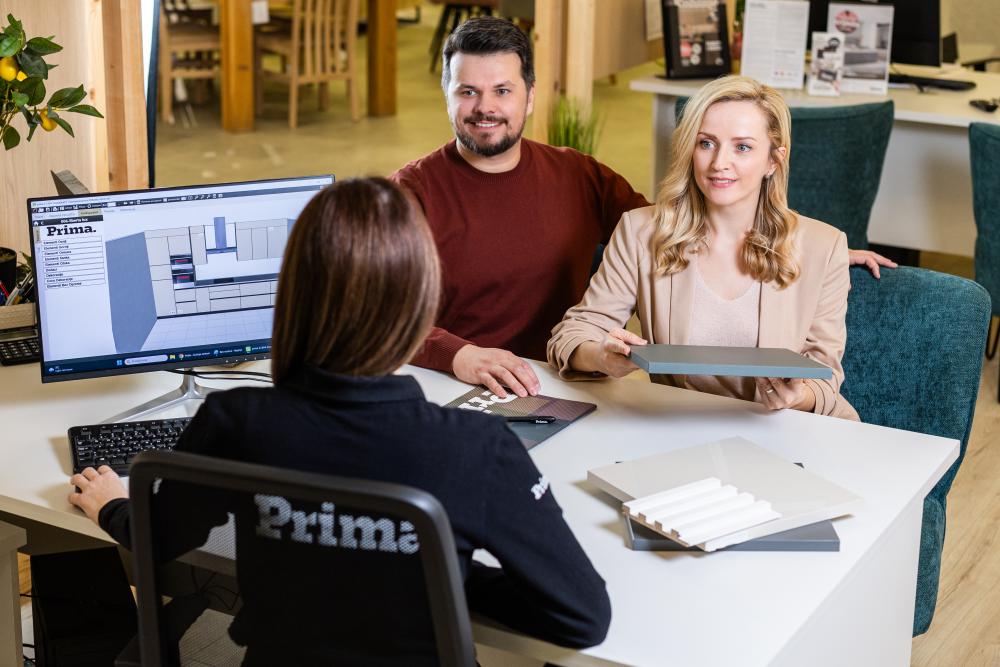 Jedno od područja na koje je Prima posebno ponosna su ugradbeni ormari i kuhinje po mjeri. Od 2025. godine svaki Prima salon postao je i Prima Studio – opremljen za detaljno projektiranje rješenja po mjeri prostora kupca.