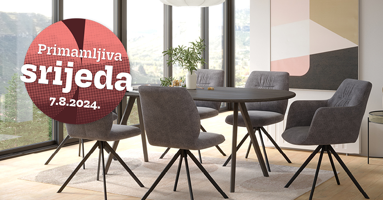 Primamljiva srijeda 7.8. donosi do 50% uštede na blagovaonice, 30% na opremanje predsoblja i do 40% na vrtni namještaj. Posjetite Prima salone i webshop i pronađite sve za opremanje doma, apartmana.