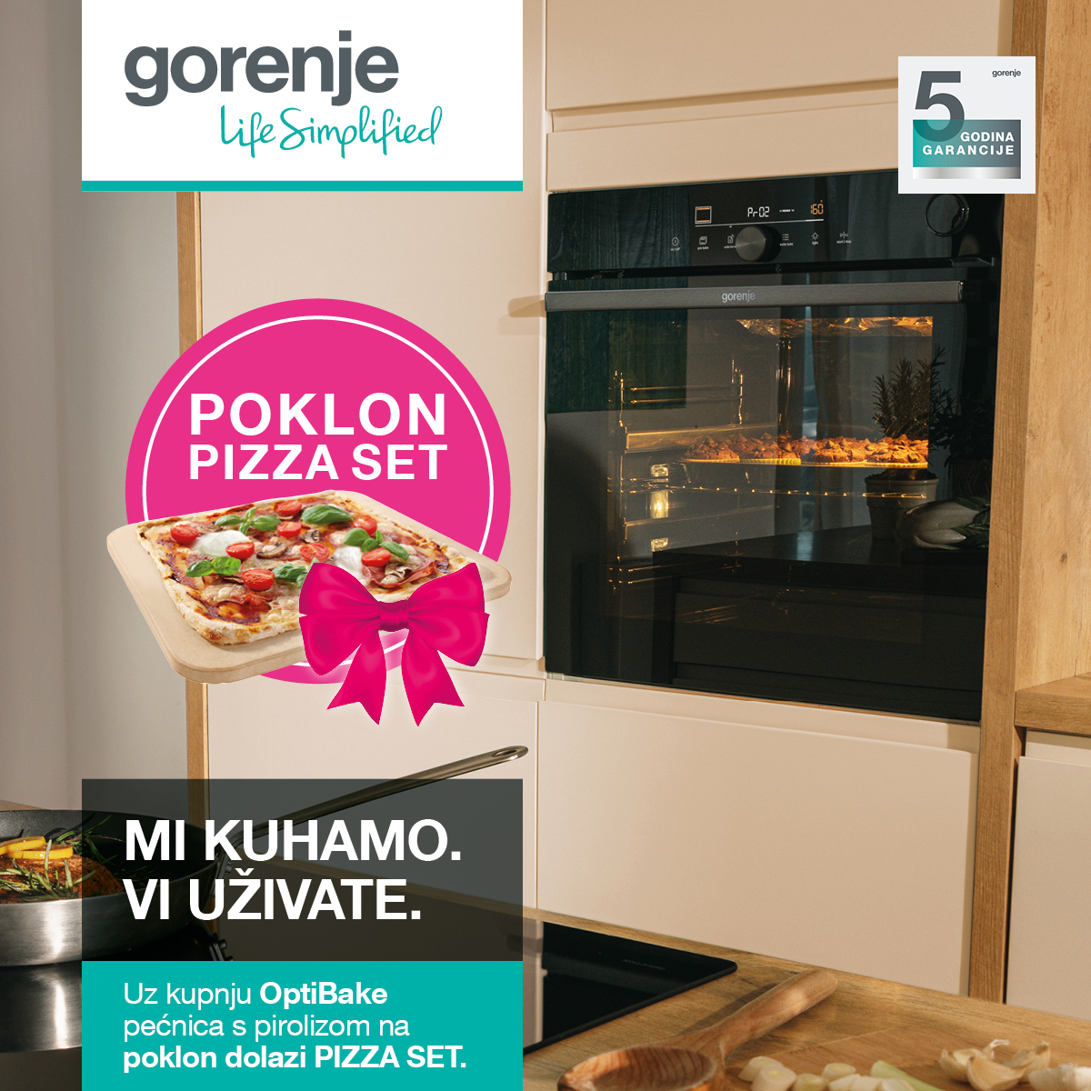 Ova posebna ponuda vrijedi za kupovinu u Prima salonima i na webshopu. U našoj ponudi bijele tehnike možete pronaći Gorenje pećnice OptiBake s pirolizom uz koje vam Gorenje poklanja poseban Pizza set do 29. veljače: