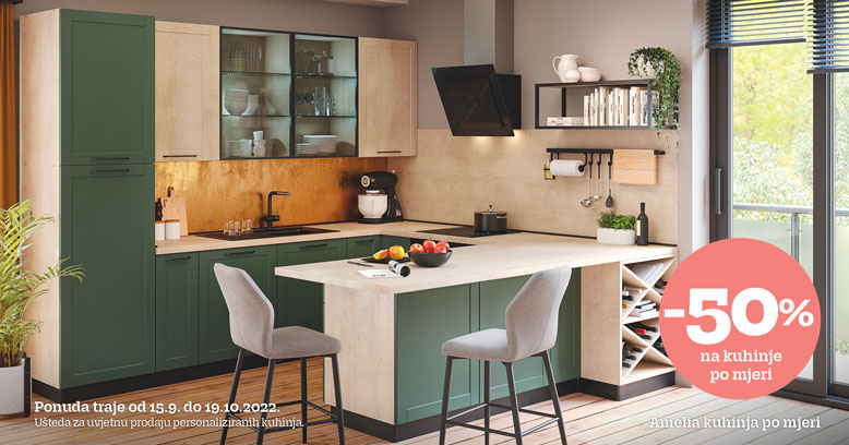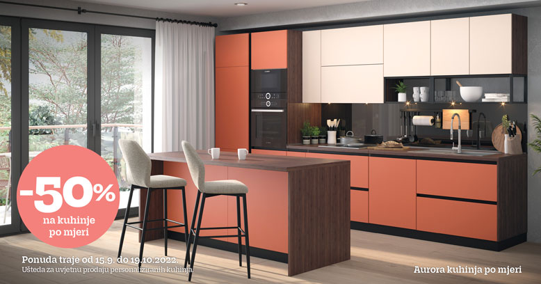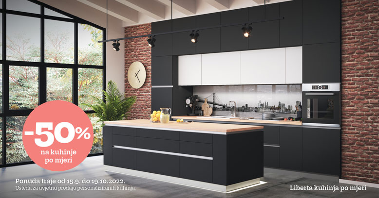 Posjetite nas od 15.9. do 19.10. i ostvarite čak 50% uštede* na kuhinje po mjeri te 40% uštede na modularne kuhinje!