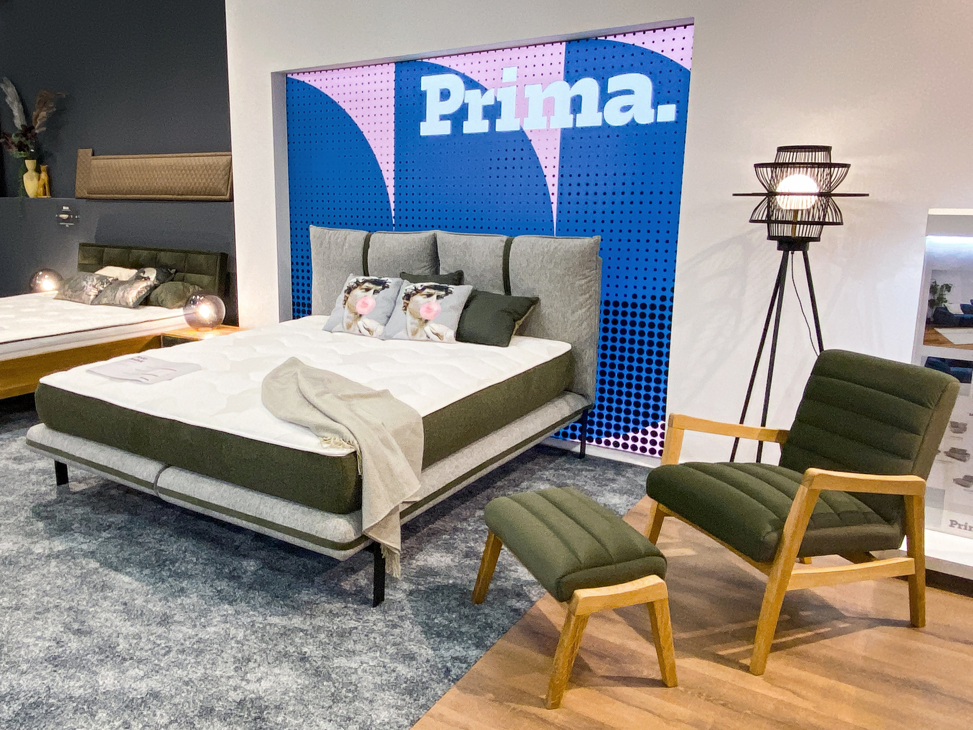 U želji da naše nove proizvode prezentiramo u što boljem svjetlu, kao i svake godine, posebnu pažnju smo posvetili uređenju našeg izložbenog prostora na sajmu. S obzirom da nakon dugih priprema i naša Prima ima novo ruho tj. vizualni identitet, nove elemente vizualnog identiteta uklopili smo u naše idejno rješenje. Uz pomoć naše vrijedne ekipe, lako smo skice i nacrte pretočili u stvarnost! Koristili smo elemente velikih svjetlećih vizuala kako bi u zoni spavanja stvorili posebnu atmosferu, a manjim pregradama stvorili smo manje ambijente blagovaoničkih setova. Dojam smo zaokružili elementima zelenih zidnih dekoracija te uz novi Prima logo, dali novu dimenziju prostoru i istaknuli naše proizvode na najbolji mogući način.