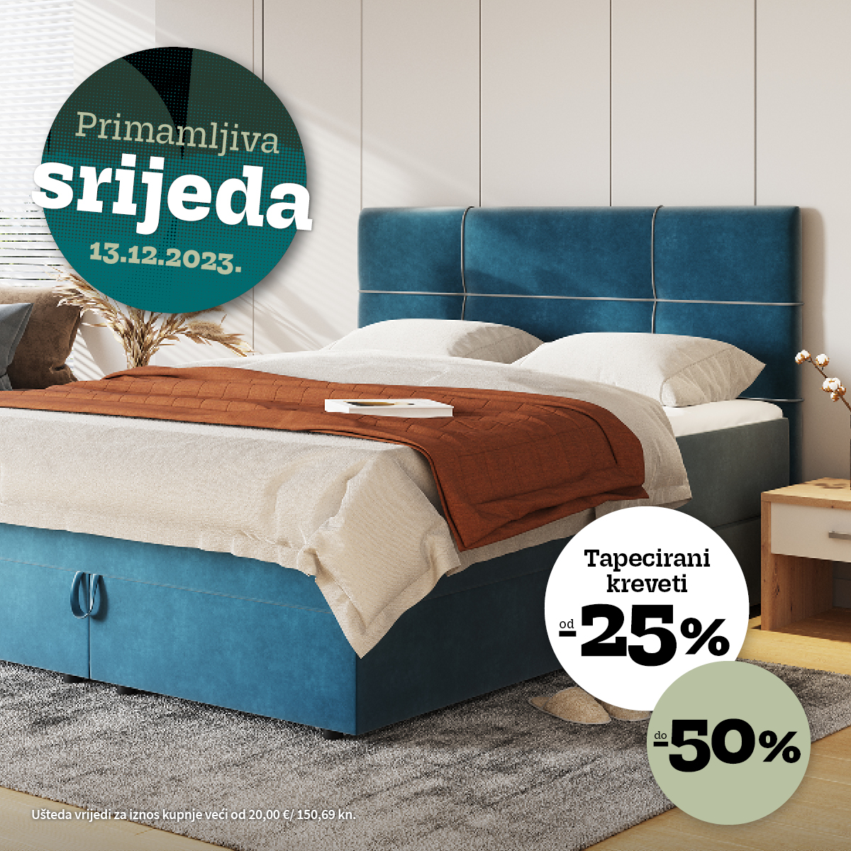 - od 25 do 50% uštede na tapecirane krevete