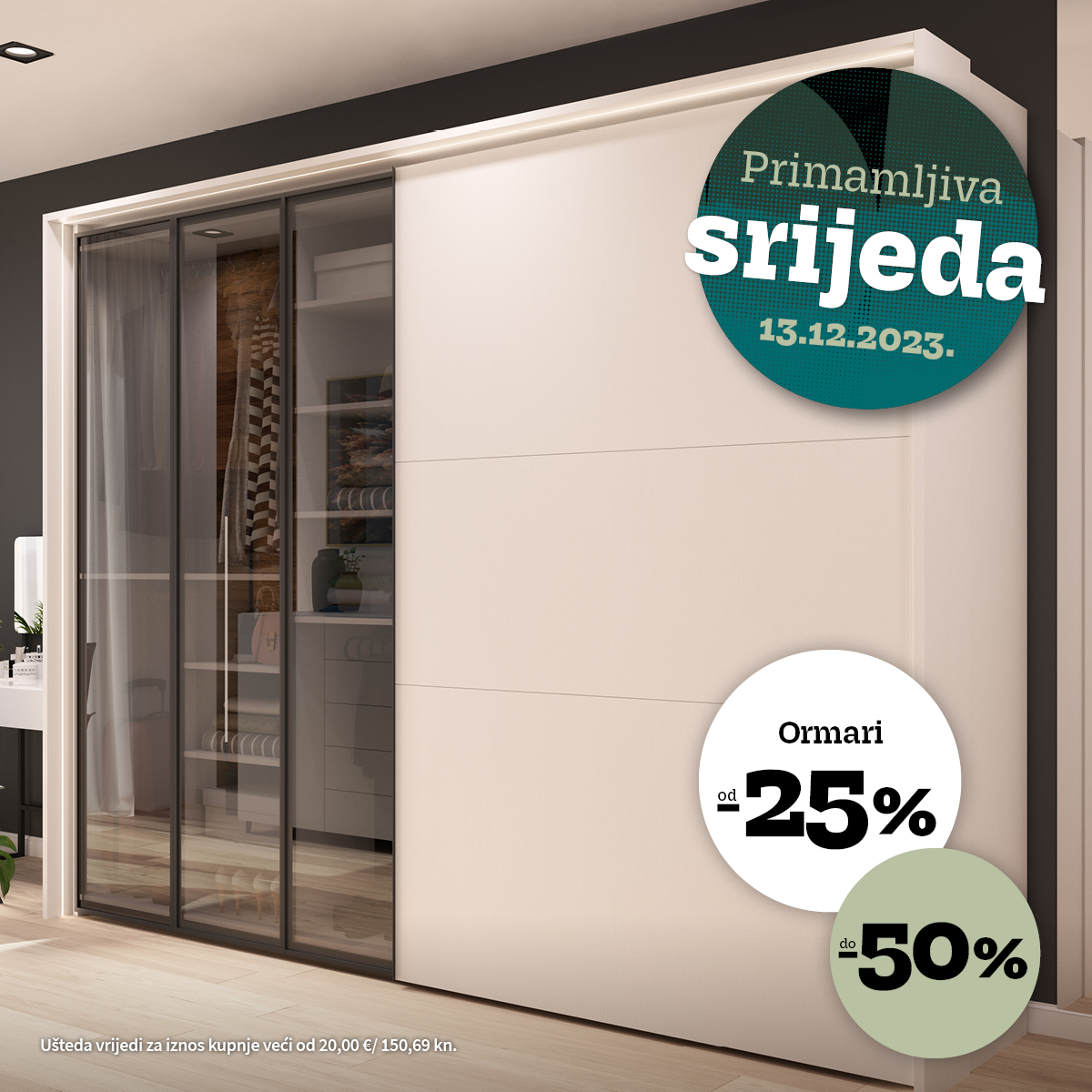 - od 25 do 50% uštede na sve ormare