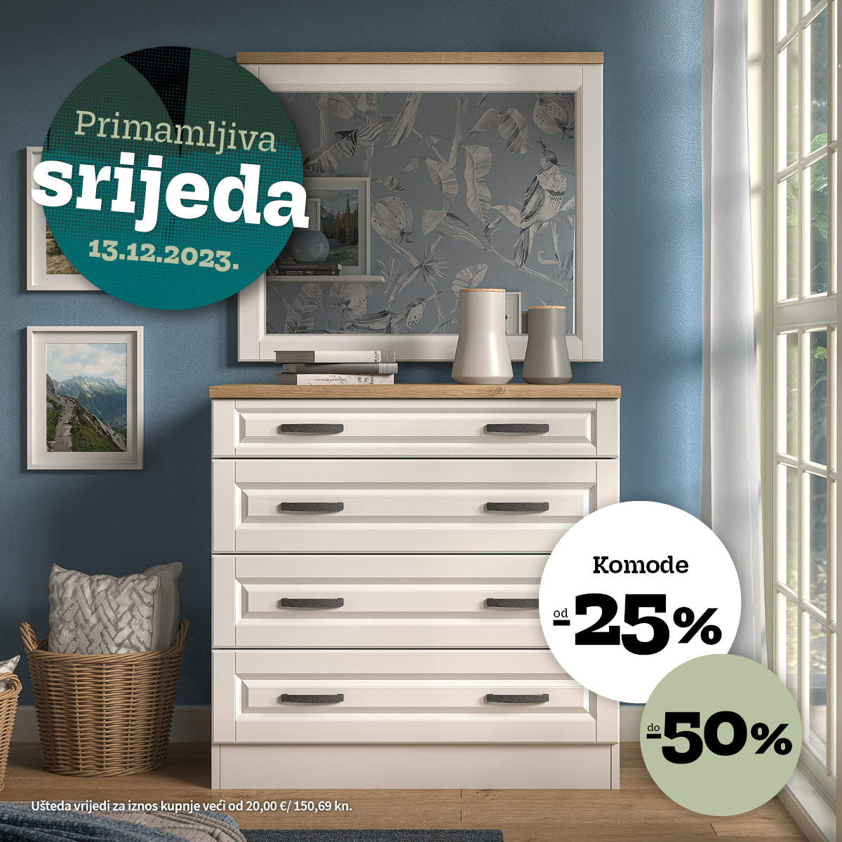 - od 25 do 50% uštede na komode