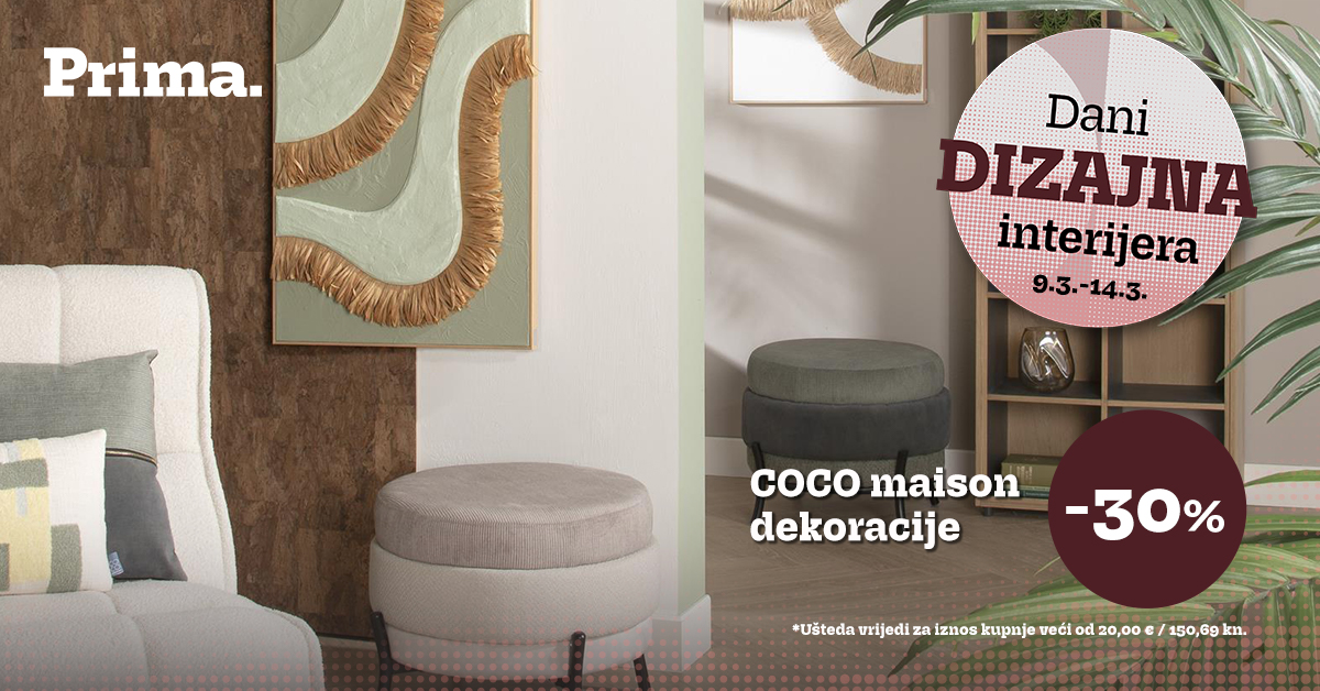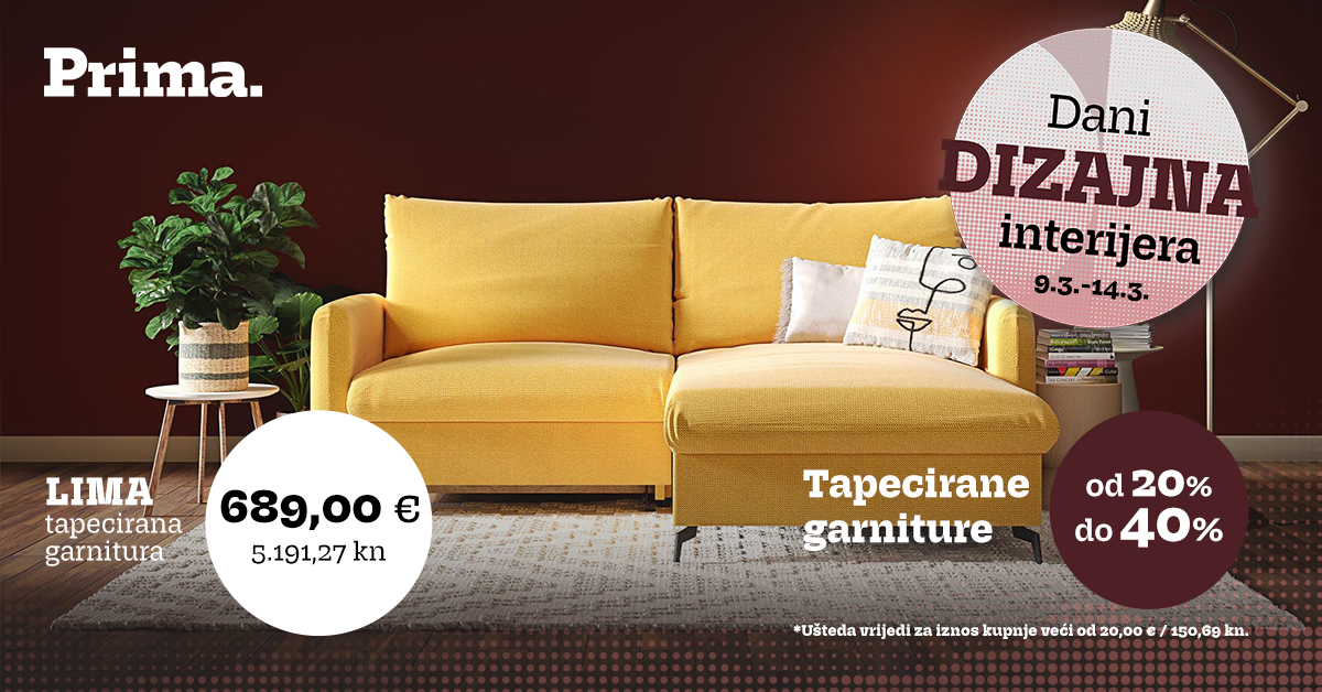 *Ušteda vrijedi od 9.3. do 14.3. u Prima salonima i na webshopu. Ušteda vrijedi za iznos kupnje veći od 20,00€ / 150,69 kn.