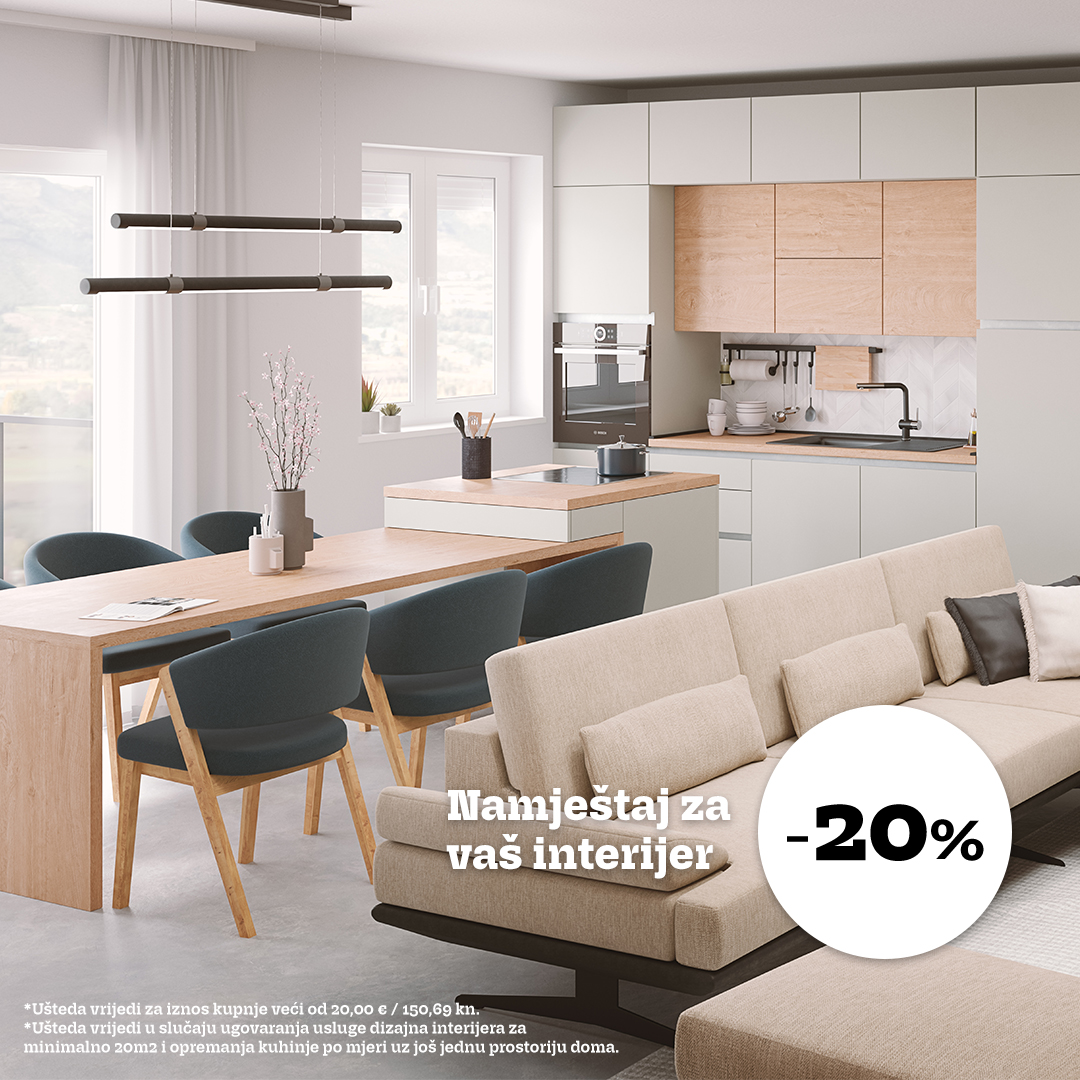 *Ušteda vrijedi u slučaju ugovaranja usluge dizajna interijera za minimalno 20m2 i opremanja kuhinje po mjeri uz još jednu prostoriju doma.