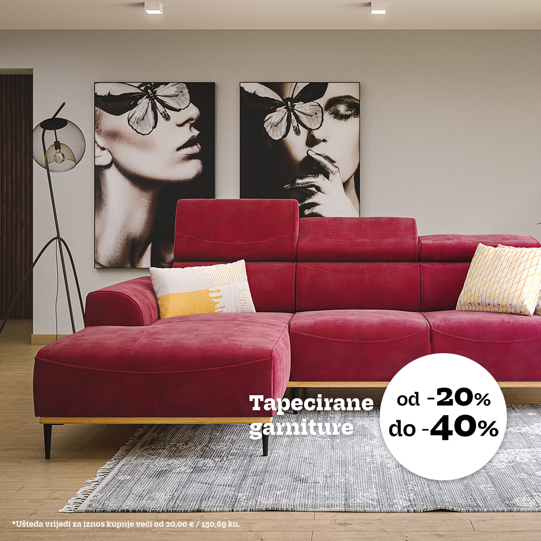 *Uštede za tapecirane garniture i COCO maison dekoracije vrijede od 25.5. do 31.5. u Prima salonima i na webshopu te ne vrijede za artikle označene oznakom HIT. Ušteda vrijedi za iznos kupnje veći od 20,00 € / 150,69 kn.