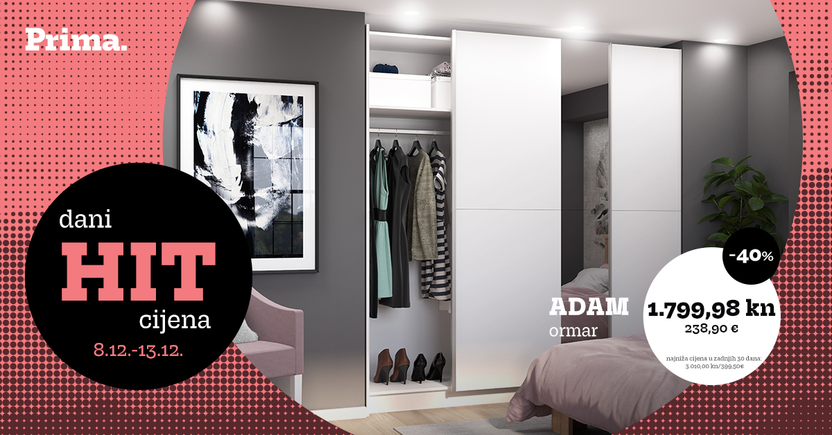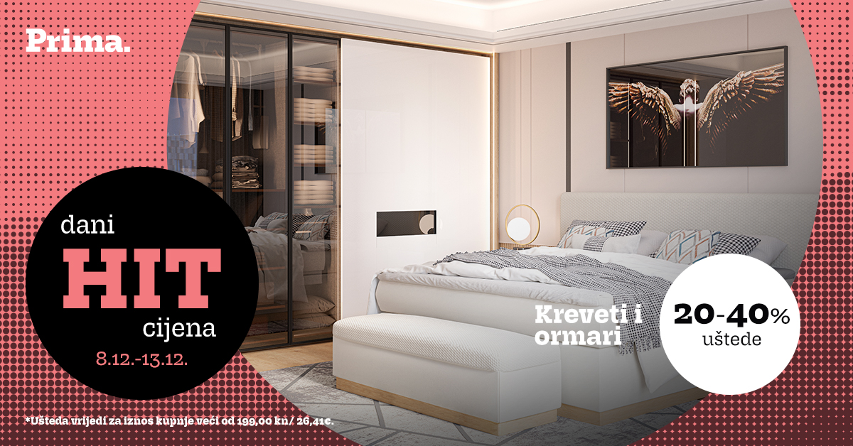 Posjetite Prima salone i webshop te iskoristite dodatno snižene cijene na odabrane proizvode i od 20% do 40% na sve krevete i ormare!