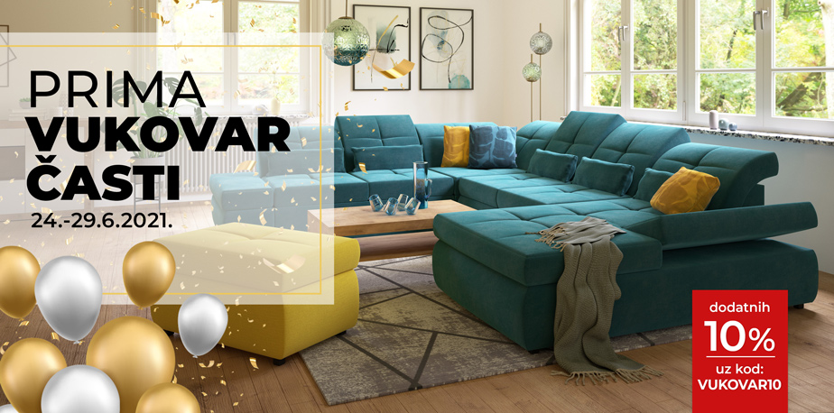 *Ušteda vrijedi od 24. do 29.6.2021. u svim PRIMA salonima i webshopu. Uštede ne vrijede za artikle označene HIT oznakom. Dodatnih 10% uštede vrijedi za artikle s uštedama do 30% za tapecirane garniture, regale I blagovaonice.