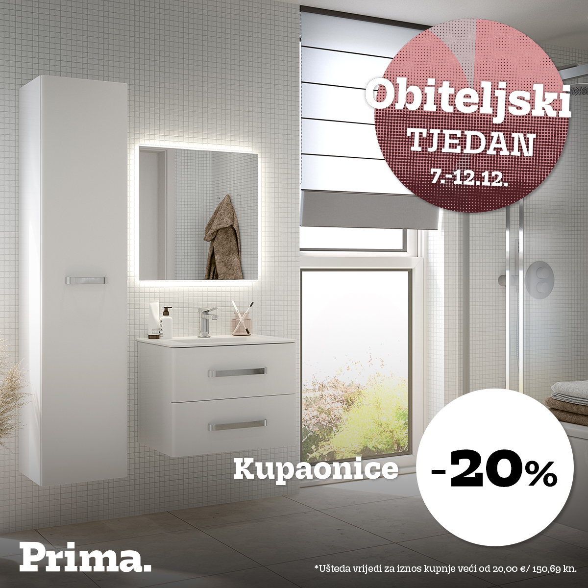 *Ušteda vrijedi od 7. do 12.12. 2023. u svim Prima salonima i na webshopu. Akcije se ne zbrajaju, međusobno se isključuju te ne vrijede za artikle označene oznakom HIT. Ušteda vrijedi za iznos kupnje veći od 20,00 € / 150,69 kn