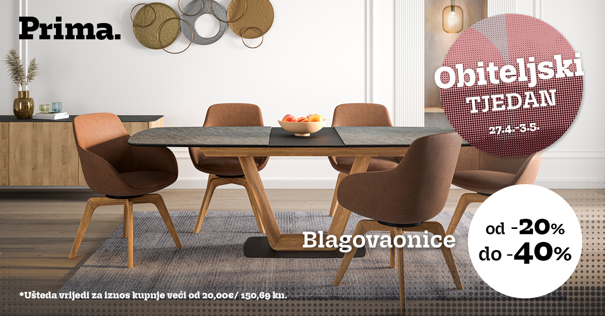 Posjetite najbliži Prima salon ili webshop u razdoblju od 27.4. do 3.5. te iskoristite uštede za opremanje interijera prema vašim željama.