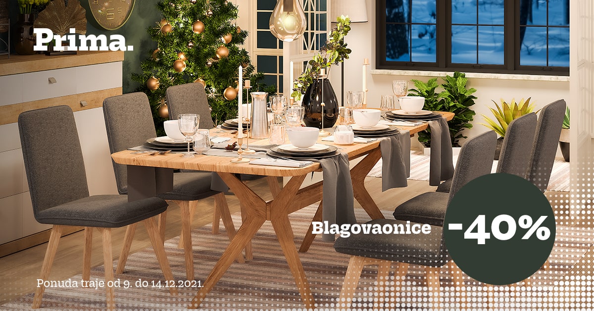 Zavirite u najbliži Prima salon ili webshop u razdoblju 9.-14.12. i opremite kuhinju ili blagovaonicu sa stilom.