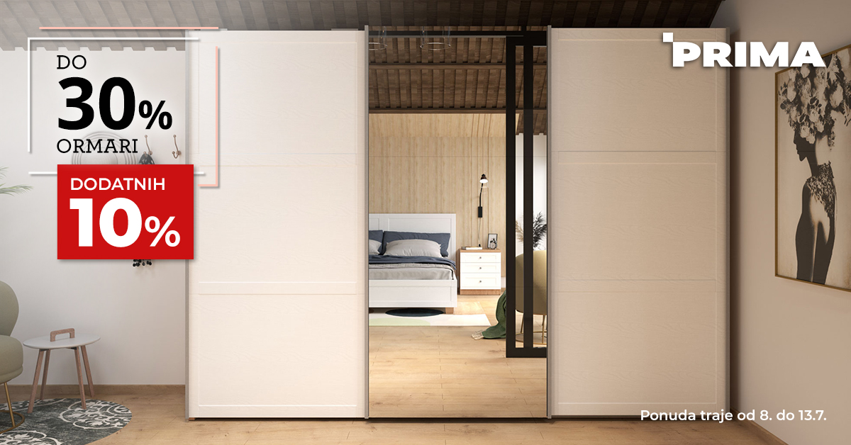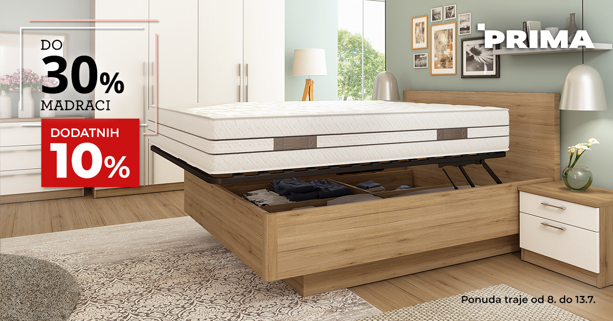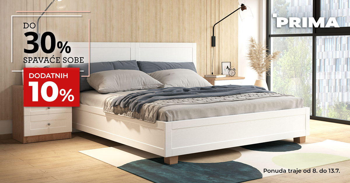 Posjetite najbliži PRIMA salon ili webshop u razdoblju 8.-13.7. i opremite spavaću sobu u skladu s vašim potrebama i stilom uz dodatne uštede*.