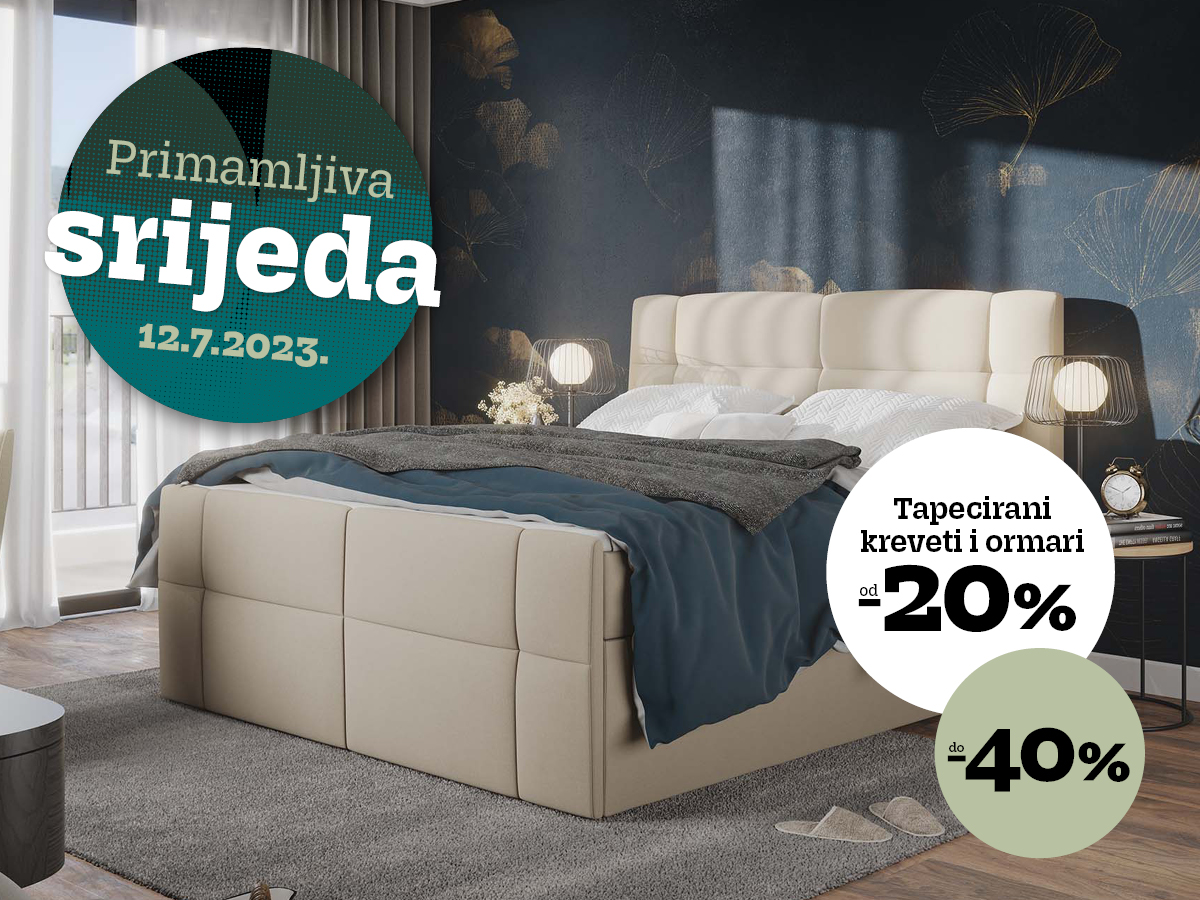 - 20-40% uštede na sve tapecirane krevete i ormare