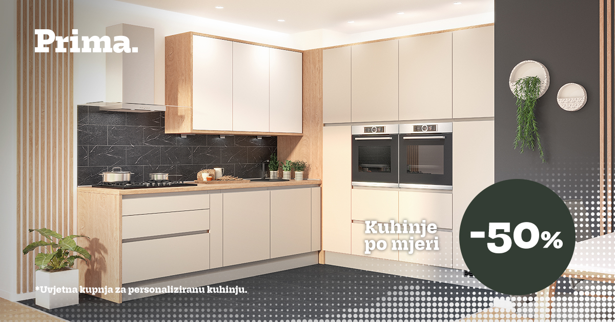 - 50% na kuhinje po mjeri - *Uvjetna kupnja za personaliziranu kuhinju.