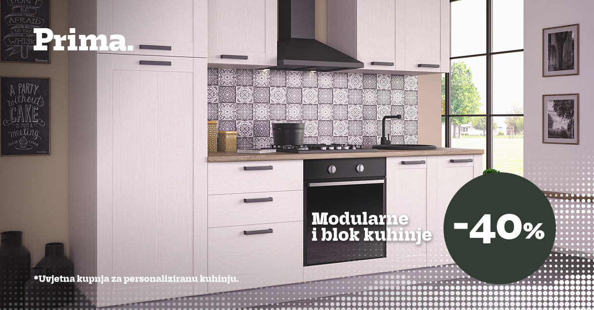 - 40% uštede na modularne i blok kuhinje - *Uvjetna kupnja za personaliziranu kuhinju.