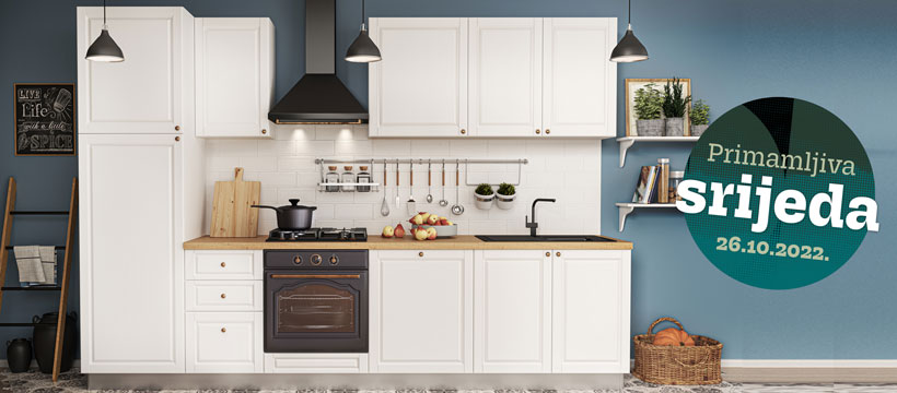 *Ušteda vrijedi na dan 26.10. u Prima salonima i na webshopu. Akcije se ne zbrajaju, međusobno se isključuju i ne vrijede za proizvode iz COCO maison asortimana i artikle označene oznakom HIT (osim blok kuhinja!). Ušteda na kuhinje vrijedi za izradu kuhinje po željama kupca. Ušteda na blagovaonice vrijedi za iznos kupnje veći od 199,00 kn/26,41€.