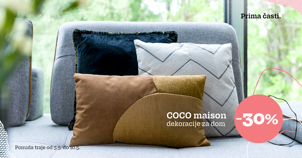 - 30% uštede na COCO maison dekoracije za dom (jastučići, zidne dekoracije, rasvjeta, taburei, tepisi, klub stolići, vaze...)