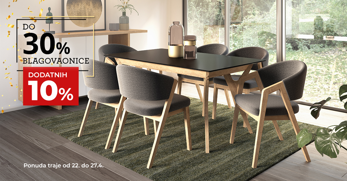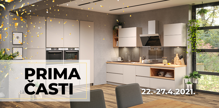 *Ušteda vrijedi od 22. do 27.4.2021. u svim PRIMA salonima i webshopu. Uštede ne vrijede za artikle označene HIT oznakom. Dodatnih 10% uštede vrijedi za artikle s uštedama do 30% za tapecirane garniture i blagovaonice te do 40% za kuhinje.