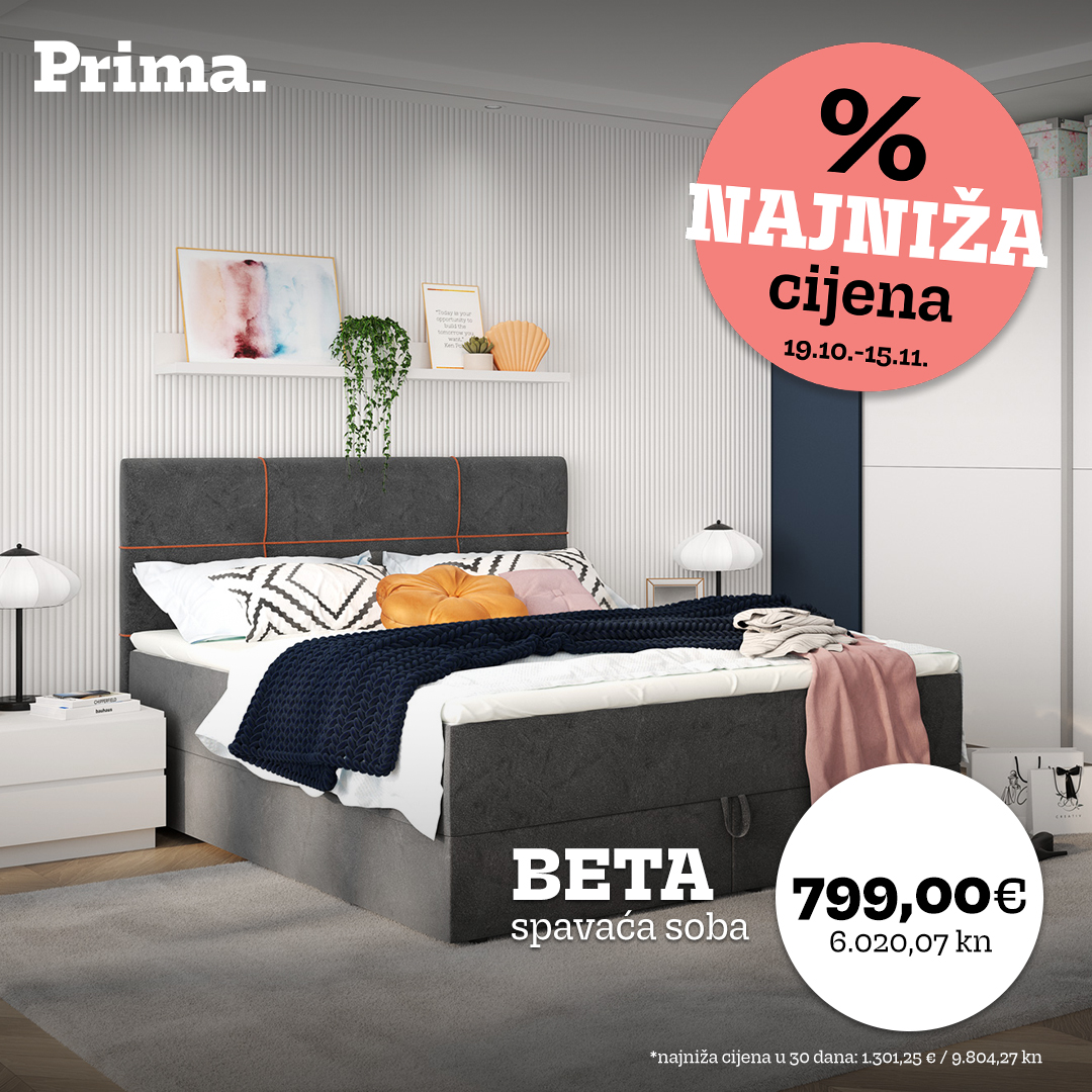 Madraci od pjene ili madraci s oprugama, nadmadraci, podnice, jastuci, popluni te elegantni i udobni kreveti, ormari, komode, noćni ormarići, toaletni stolići – sve za buđenje s osmijehom možete pronaći u Prima salonima diljem Hrvatske te u Prima webshopu.