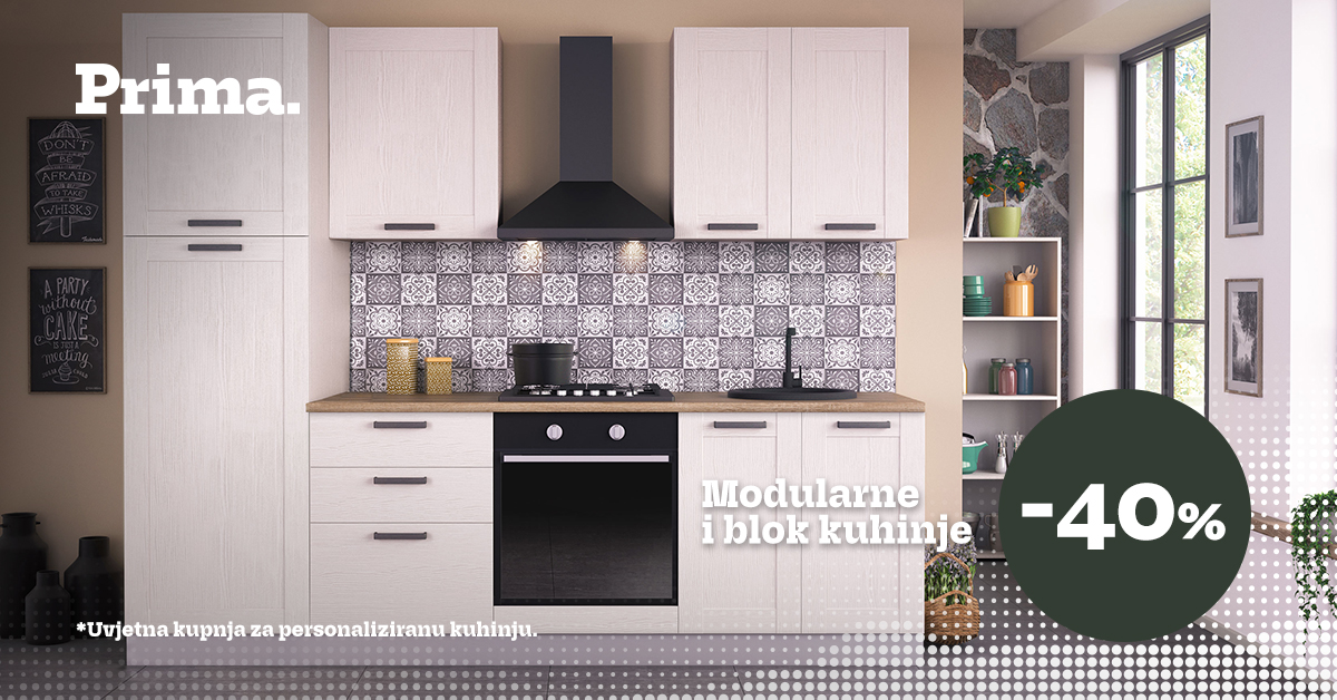 - 40% uštede na modularne i blok kuhinje - *Uvjetna kupnja za personaliziranu kuhinju.