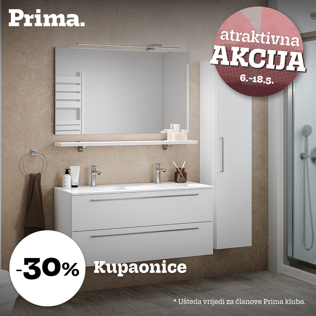 Uštede vrijede od 6.5. do 18.5.2024. u salonima i na webshopu. Uštede vrijede za članove Prima kluba. Uštede se ne zbrajaju i međusobno se isključuju.