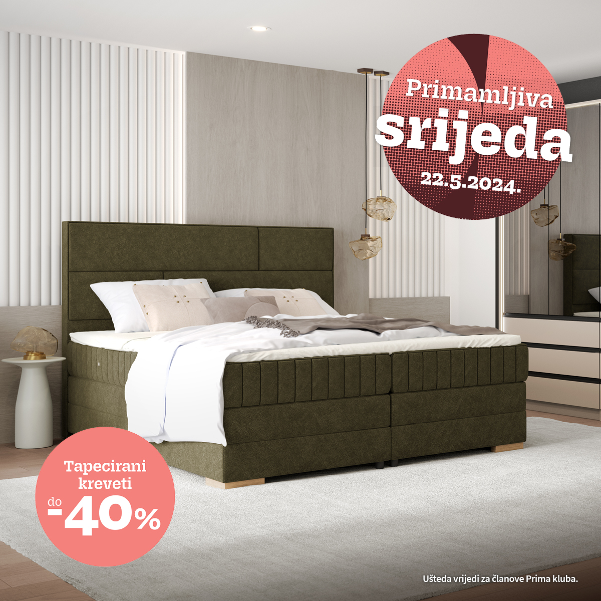 Odlučili ste opremiti svoju spavaću sobu sada je pravo vrijeme jer Primamljiva srijeda donosi uštede na tapecirane krevete te ormare. Dodatno, iskoristite uštede i na uredski namještaj i uredite svoj kutak za rad od doma ili za učenje.
