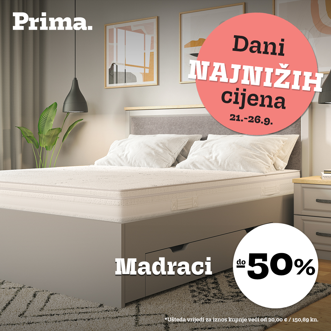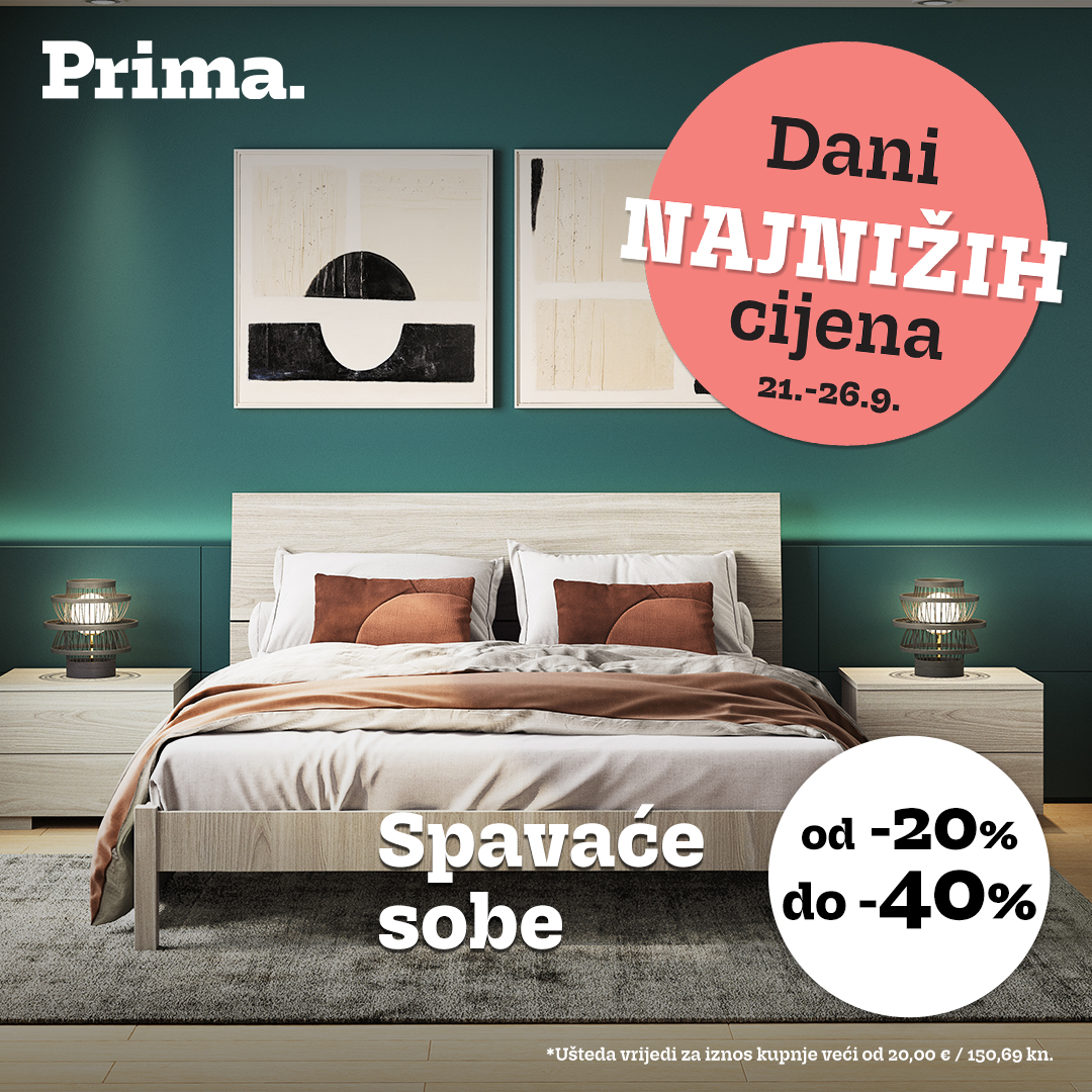 Posjetite Prima salone i webshop jer počinju Dani NAJNIŽIH cijena koji će trajati u periodu od 21. do 26. rujna.