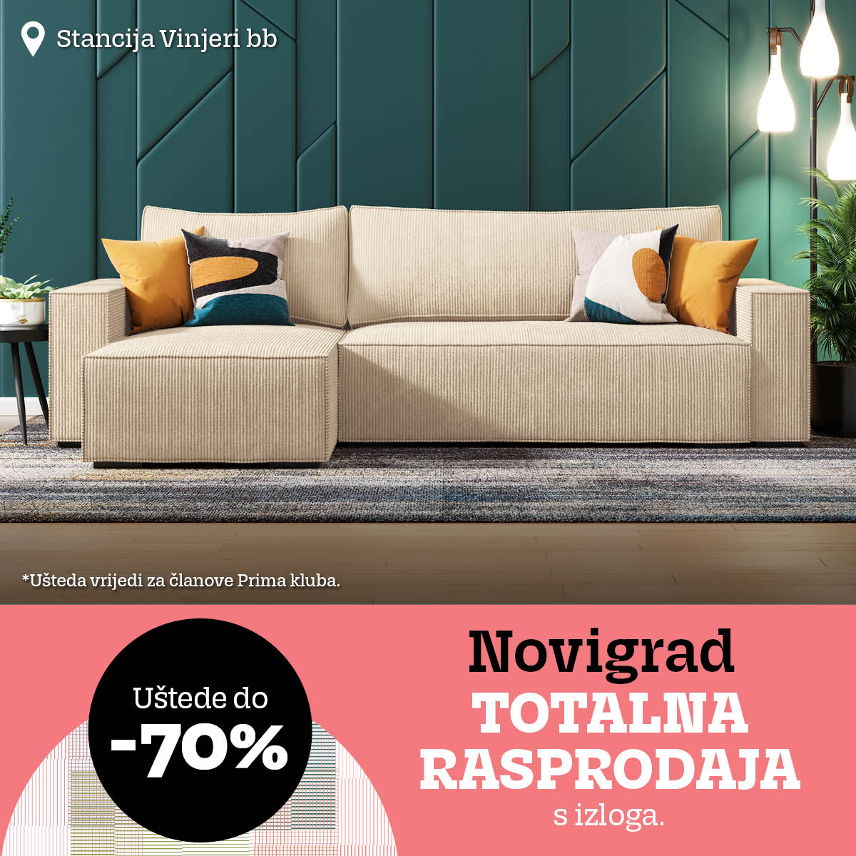 *Akcija traje od 18. do 25.3.2024. ili do isteka zaliha i odnosi se na odabrane artikle u salonu Novigrad, na adresi Stancija Vinjeri bb. Ušteda vrijedi samo za članove Prima kluba. Vrijede cijene istaknute na prodajnom mjestu. Ne vrijedi online. Uštede se ne zbrajaju.