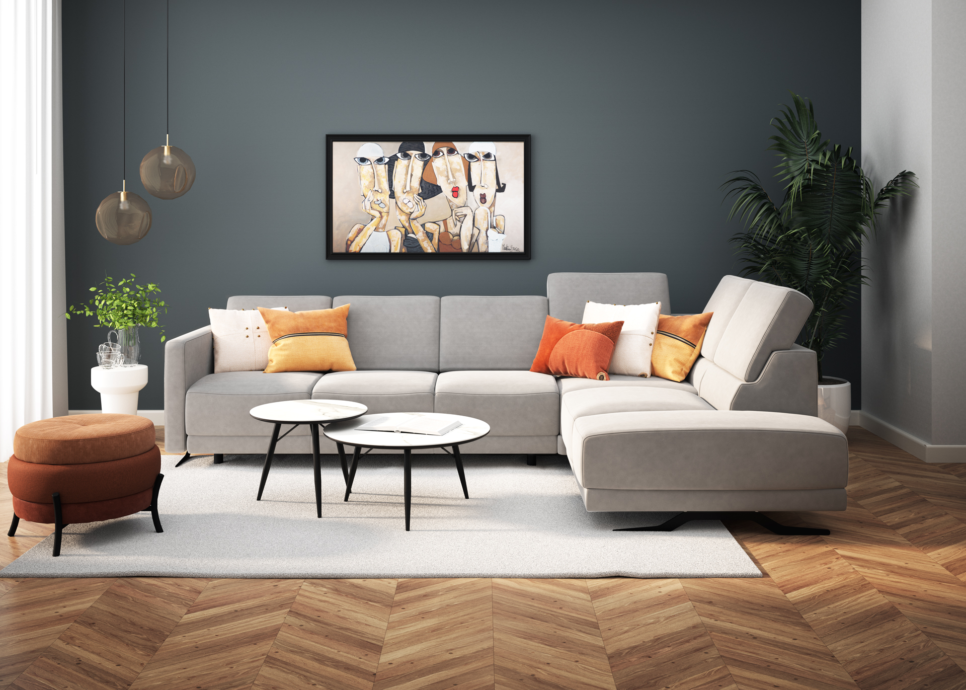 Modularna garnitura Tesla ima uglađenu i izrazito modernu siluetu s blago zakošenim rukonaslonima, koji se nadovezuju na atraktivno izdužene nogice, dok je glamurozna modularna garnitura Monnalisa pravo remek-djelo. Oplemenjena je mehanizmom koji naslon pomiče za 40 cm, produbljujući prostor za sjedenje.