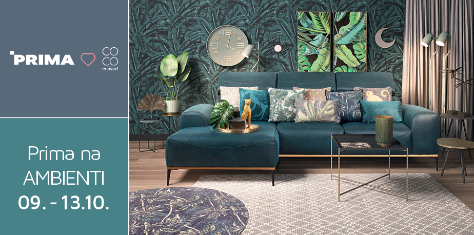 Od 9. do 13. listopada posjetite Primu na međunarodnom sajmu Ambienta na Zagrebačkom Velesajmu. Na štandu veličine 200 kvadrata pogledajte našu najnoviju kolekciju namještaja, dizajniranu i proizvedenu u Primi! Na sajmu predstavljamo i COCO maison, nizozemski brand dekoracija za dom, ekskluzivno dostupan u Primi.