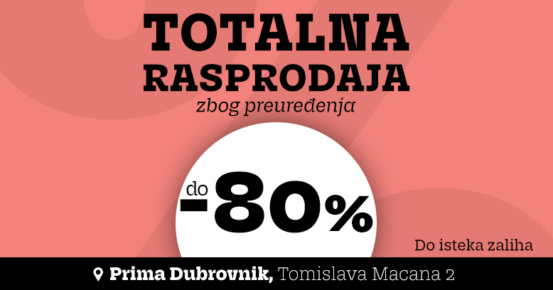 Požurite u Prima salon Dubrovnik jer vas čeka totalna rasprodaja zbog preuređenja i uštede do 80%.