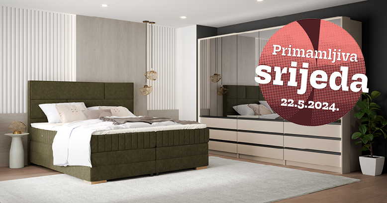 Nova Primamljiva srijeda 22.5. donosi uštede do 40% na tapecirane krevete, ormare i uredski namještaj. Požurite, uhvatite uštede i uredite svoj dom.