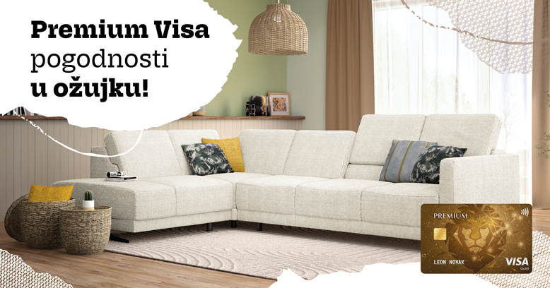 Posjetite Prima salone u periodu od 6.3. do 15.3. i uz Premium Visa karticu ostvarite 30% uštede na sve premium tapecirane garniture