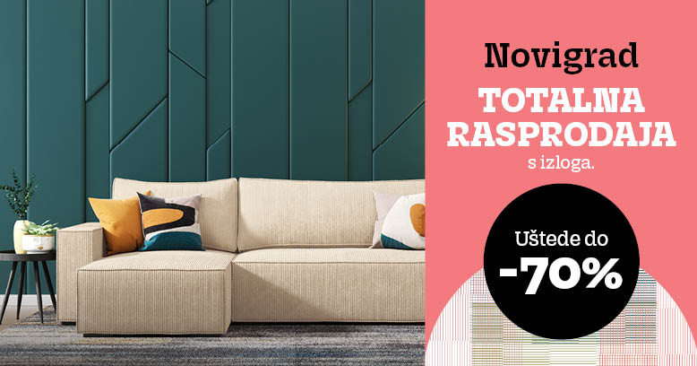 Totalna rasprodaja asortimana s izloga u Prima salonu u Novigrad! Opremite svoj dom vrhunskim namještajem vlastite proizvodnje uz uštede do čak 70% koje možete iskoristiti u periodu od 18.3. do 25.3. ili do isteka zaliha.