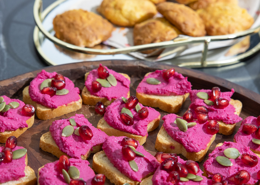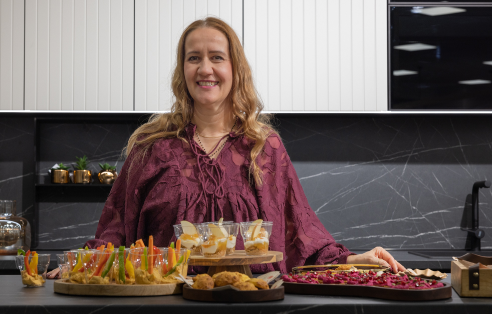 U Steli, našoj najnovijoj i posebno atraktivnoj kuhinji po mjeri Tamara je pripremala zdravije finger food delicije u jesenskoj paleti boja. Bilo je tu raznih kolačića, zdravih krekera, crumble od jabuka i Tamarin posebni jesenski humus koji je bio toliko fin i vizualno privlačan da je nestao u trenu.