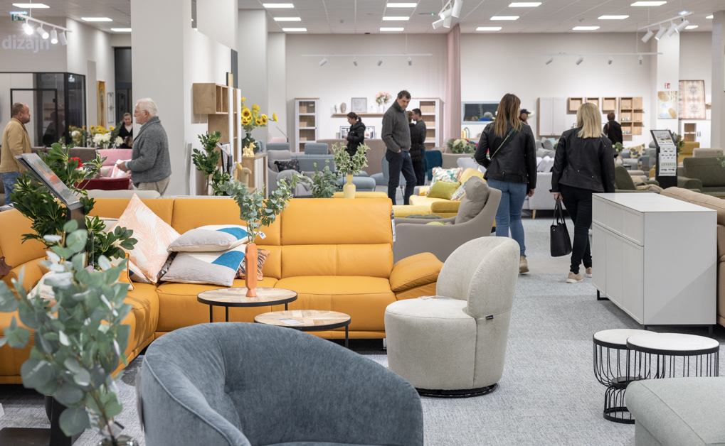 Prostor novog salona, od 3200 kvadrata podijeljen je na dva kata. Od ulaza, kupci u prizemlju mogu razgledati asortiman kuhinja i blagovaonica, bogatu ponudu tapeciranog namještaja i regala za dnevne sobe te prošireni asortiman kupaonica.